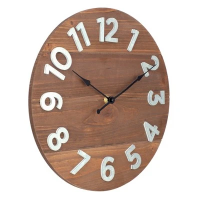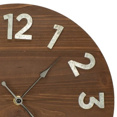 Going along with the popular farmhouse theme, this walnut wood plank clock will coordinate with any furniture finish, from white and gray, to black and brown. The rich walnut wood background blends perfectly with the galvanized metal numbers. The 12 inch size make it a perfect fit for your office, kitchen, or entryway.