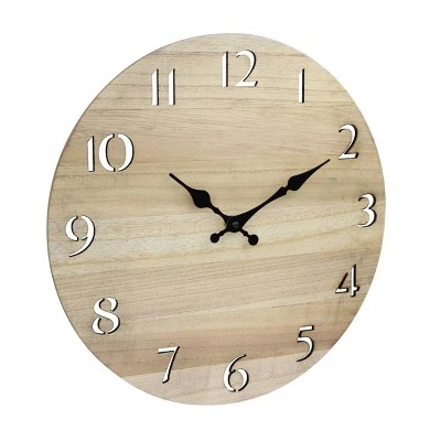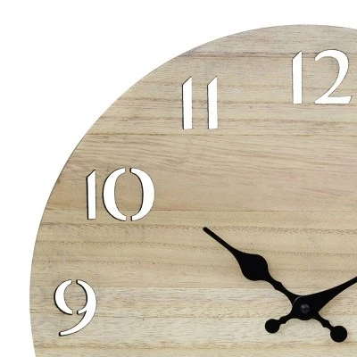 - Features a smooth light natural wood clock face with cut out Arabic numbers