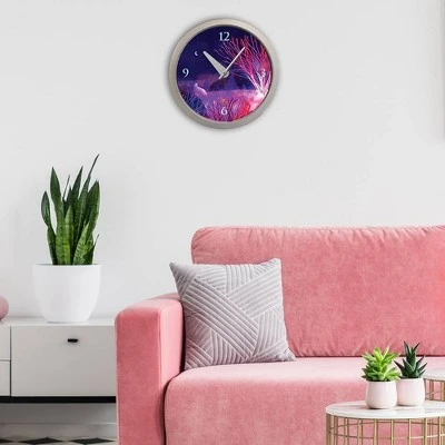 Made in the USA by people who are blind. Artist Series Rich Green – Yakone 14.5″ Silver Contemporary Body Quartz Movement Decorative Wall Clock Beautiful and colorful clock face provided by renowned artist Rich Green. Yakone (Red Aurora) Scene depicts the mystical communication between animals and nature.