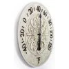 The Blanc Fleur indoor/ outdoor thermometer from Infinity Instruments is proof that thermometers can have style and flair. This 15” versatile wall thermometer has a weathered off-white finish, open-faced design, and features a raised fleur-de-lis pattern in the center. With bold Arabic numerals and hand, you can easily read the humidity in any outdoor space. This decorative thermometer is water-resistant, and accurately reads the ambient temperature from -40° to 120°F.