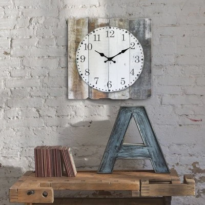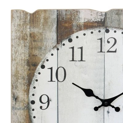 Add a bit of rustic elegance to your home decor with a Stonebriar 15.7″ x 15.7″ decorative farmhouse wooden wall clock. This unique clock features a country rustic inspired design with a worn brown and white painted wood clock face print with lightly distressed black Arabic numbers giving a vintage cottage feel. It is the perfect addition for the kitchen, living room, bedroom, or any room in your home. Clock is lightweight and comes with attached keyhole hangers for easy installation right out of the box. Decorative clock is battery operated and requires a single AA battery (not included).