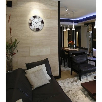 Marble and slate are materials that increase the “wow” factor when used in home décor! Our faux Marble Look Wall Clock adds a sleek modern touch no matter the room. The marble screen print adds modern elegance, and its chrome accent provides additional sparkle. Its neutral color scheme works blends especially well with elemental color-based room designs. Like many of our products, it comes with a one-year limited manufacturer warranty. This decorative wall clock will add a strong sense of contemporary flair to your home!