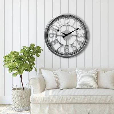This westclox® 20-inch see-through wall clock with silver case offers 20 in. round wall clock Open dial. This high-quality, unique clock also offers a Silver case and a Glass lens. This product has Quartz accuracy and requires 1 AA battery (not included), This westclox® 20-inch see-through wall clock with a silver case is an item from our housewares, household equipment & accessories, clocks collections which comes with a full satisfaction guarantee. 1-year limited warranty.