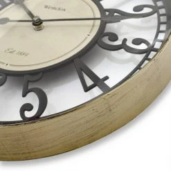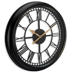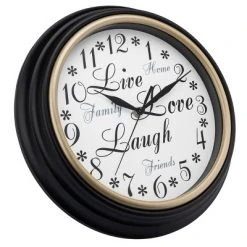 This traditional Westclox 24” large wall clock is the beautiful time piece that will make a statement in any room. Featuring a classic black finish with handed finished gold highlights. The beautifully vintage clock face with large numbers makes it easy to read from across the room! Quality quartz movement ensures perfect time accuracy. Requires one AA battery to operate.