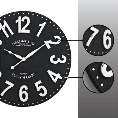Nothing ties a room together better than a great clock, and the one you choose to place in your home should reflect your personality and style. We hear you. Making a bold, contemporary design statement, our FirsTime & Co.® Sullivan Farmhouse Wall Clock is crafted of plastic and features white raised number cut-outs on a matte black face. Light black distressing on the face gives it a touch of vintage appeal. This clock would be a chic, perfect for any home or office. Finding the right clock to suit your style has never been easier thanks to our wide range of FirsTime & Co.® timekeeping solutions.