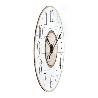 Especially fitting for an empty wall space, this 36 inch clock effortlessly draws the eye with its 3.25 inch wide wood slats and bold 5 inch high numbers. Place a black and white rug nearby and add a natural wood side table. Top off the setting with a few rustic black and white decorative pieces.