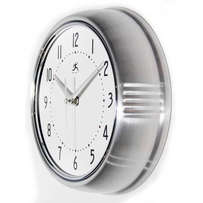 The Retro Round Silver Wall Clock’s stunning silver frame and unique retro design sets it apart from the rest. Infinity Instruments Retro Wall Clock collection has been a staple in the interior design/ wall décor accessories for well over a decade. It has proven the test of time with a clean retro look that fits most, if not all, home décor layouts. There have been many copy-cats but there is only one true Infinity Instruments Retro Aluminum Wall Clock.