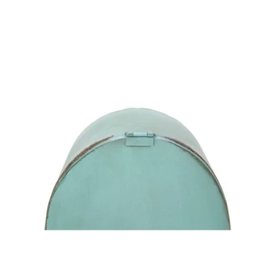 Take time to spruce up your writing desk or étagère display with this distressed aqua clock. Particularly fitting for a vintage space, this metal timepiece instantly bolsters any surface top with a splash of color-whether it rests atop a fireplace mantel in the master suite or resides by flickering candles and blooming floral vases on the foyer console table. Harmoniously complement its distressed details with weathered planters and antiqued heirlooms on the dining room sideboard table, then indulge more in the farmhouse aesthetic by pairing it with wooden candleholders, crackled and glazed ceramic bird figurines, and a rustic metal pendant suspended overhead. It is 10 inches x 4 inches x 9 inches and requires 1 AA battery.