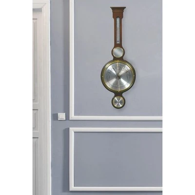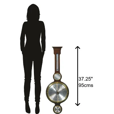 - A thermometer, larger barometer, and hygrometer at the base accent this longer frame.