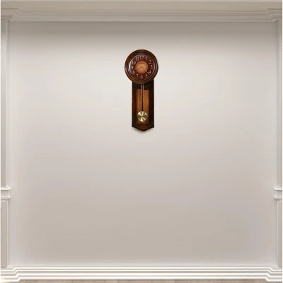 - Wooden Design: For the wooden wall clock enthusiast, this dual-tone wall clock offers all the best in wood design. A handsome Rustic Cherry finish with a contrasting Vintage Umber inset panel creates a luxurious look. The wood stick pendulum features a spun brass-finished bob for a complementary touch.