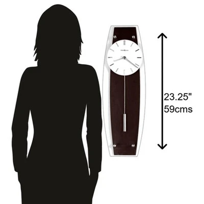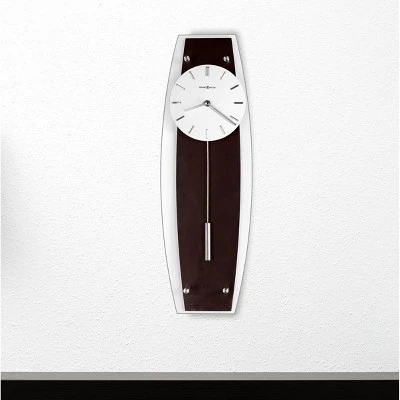 - WALL CLOCK: The Cyrus Wall Clock features a Wenge look and black coffee-finished back panel with polish nickel-finished accents to compliment your home decor. The cylindrical pendulum makes a soft ticking noise without the use of chimes for a quieter environment.