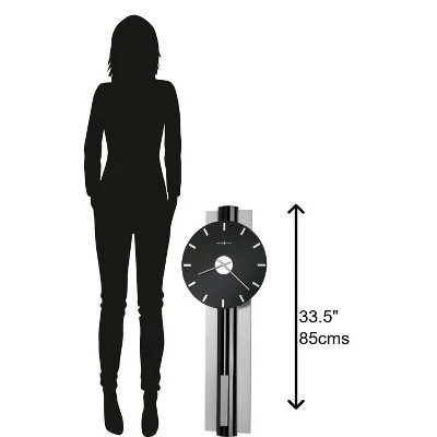 - Modern Style: This eye-catching wall clock has contrasting black and silver tones for modern elegance. It’s enhanced with a rectangular pendulum, which has a brushed nickel finish, and it has a sleek appearance that complements any room.