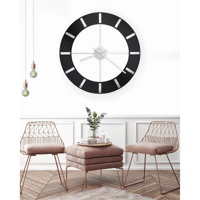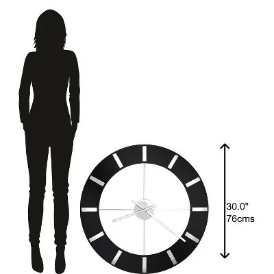 - WALL CLOCK: This Onyx Oversized Wall Clock features a high-gloss Black finish to complement your home decor. The clock’s quartz movement makes a soft ticking noise without the use of chimes for a quieter environment.
