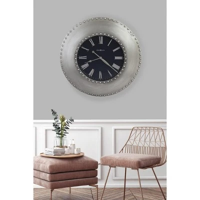 - Detailed Design: No detail was left unnoticed with this modern wall clock. Decorative nailheads circle the clock and a black satin dial with silver Roman numerals and hands completes the look. Finally, a glass crystal protects the dial, keeping the piece clean and operable.