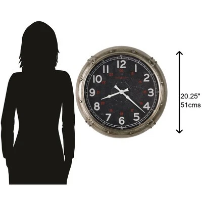 - Meticulous Design: It’s the little details that set this antique wall clock apart from everything else. You’ll appreciate the role that metal plays in conveying its old-world look. The aged-silver finish instantly calls to mind bygone eras, while decorative rivets add to the mood. The dial is finished in aged black for a bold contrast, with bright white, aged Arabic numerals and minute track, red inner numerals, and white hour and minute hands. This nautical wall clock features a smooth glass crystal to protect its integrity.