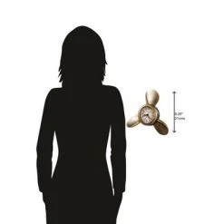 - A brass-finished handle, reeded columns with turned caps, and a matching reeded base frame the decorative dial.