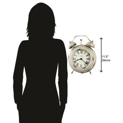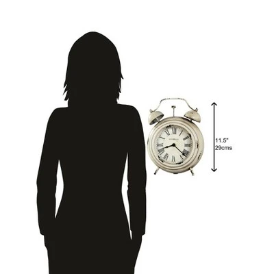 - Antique Elegance: This metal mantel clock has an antique white finish that’s distressed for an aged look. Details including a fixed top handle, decorative faux bells, and a hammer further enhance the antique appearance of this timepiece.