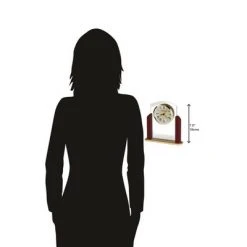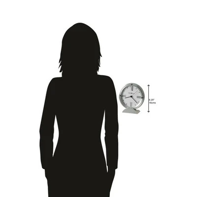 - Elegant Roman Numerals: The classic Roman numerals have a traditional look that contrasts with the white dial and silvertone finish of this table clock. Black hour, minute, and second hands match the numerals and the square hour markers in between.