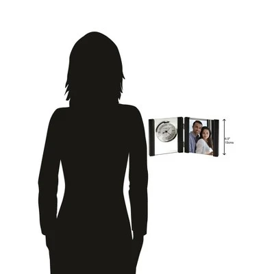 - HIGH QUALITY: The design is a home essential with a polished silver-tone bezel suspended in a clear glass panel. Tell time with a satin silver-finished center, a diamond-cut, silver-finished metal outer ring, hour markers, and Roman numerals, black hands, silver alarm hand, and glass crystal to stand out over the dial. MOVEMENT: The portrait clock holds a 4 inch by 6-inch photo. It is powered by quartz alarm movement and requires one AA sized battery.