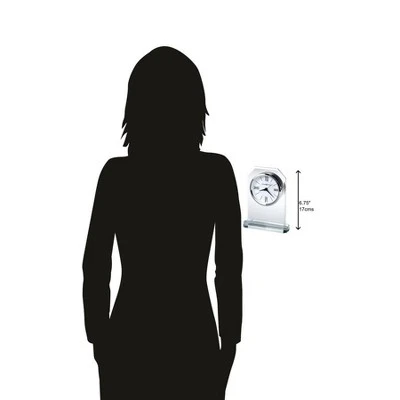 - Premium Design: At a glance, this exquisite alarm clock conveys strength and sophistication. Crisp Starphire glass contributes to its substantial appearance and provides nearly surreal clarity from all angles. The crystal features beveled corners for a distinctive, angular appearance, while a solid Starphire crystal base with beveled corners contributes continuity from top to bottom. The central white dial stands out thanks to black Roman numerals and bar-style hour markers, along with matching black hands. A silver alarm hand and polished silver-tone bezel complete the look, while a flat glass crystal safeguards the dial.