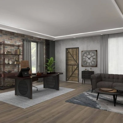 - Reflective and textural silver metal, pierced numerals and trim, and decorative brown rust trim