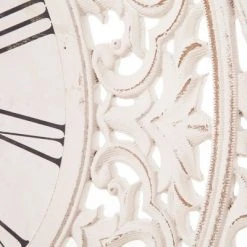 24″ Distressed Ornate Wood Carved Wall Clock White – Patton Wall Decor