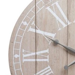28" Galvanized Plank Roman Numerical Round Wall Clock Metal/Washed Wood – Patton Wall Decor