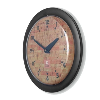 Supporting employment for people who are legally blind for more than 40 years. Cork is part of our naturals fashion clock series. Black hour and minute hands match the sleek 14 inch black body, providing stark contrast on the light cork printed background. A modern, natural design for any home or office environment.