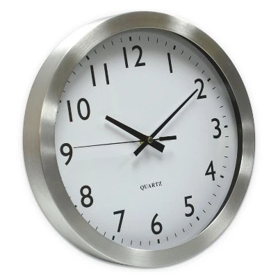 The wide profile aluminum frame features a brushed steel finish. Large bold numerals on the face provides extra clarity and readability. Quartz movement insures accurate timekeeping. This contemporary 12″ clock is 1.75″ deep featuring a brushed steel finish. The large bold numerals on the white face provide extra clarity and readability. High quality quartz movement insures accurate timekeeping. Second hand. One AA battery sold separately. Sold as 1 Each.