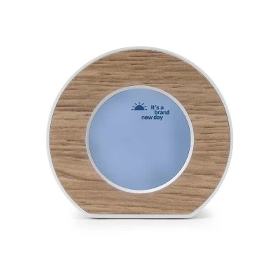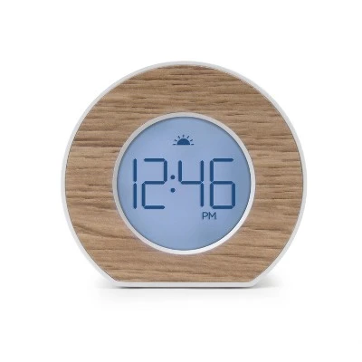 Toc Round is a small, lightweight alarm clock that fits right in on your nightstand. This battery operated alarm clock provides a style that matches your décor (2 x AAA batteries required, not included). Tap the top of the clock for snooze and digit display.